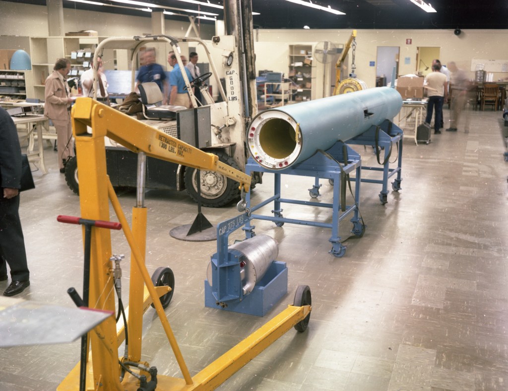 For the last year or so, I have been closely following the Flickr page of the San Diego Air & Space Museum as they digitise photographs from Convair’s historical archives. They were first brought to my attention when images of W84 mock-ups appeared in the Convair collection. Since then, all manner of W84 and W80 mock-ups have appeared, including a few images of the equipment used to press fit the W80 into Tomahawk
