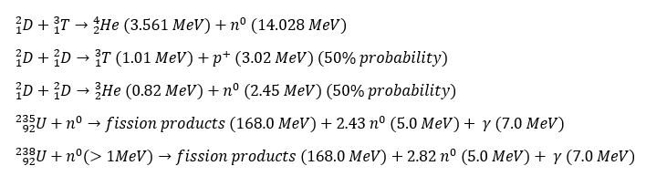 In a thermonuclear weapon, there are several nuclear reactions of note. The reactions and their energies are listed below.